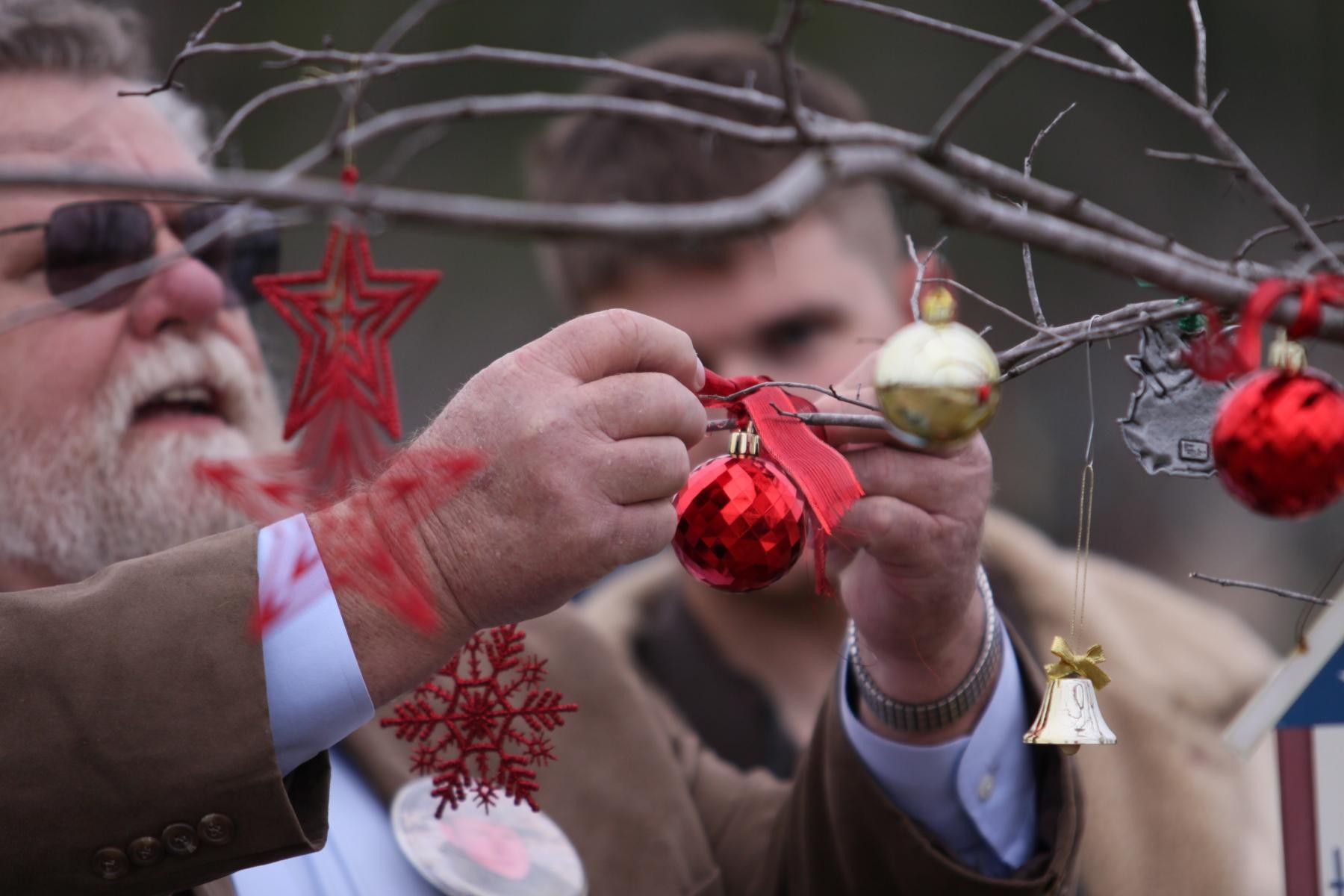 The family of Sgt. Peter Neesley, who was assigned to the 3rd Squadron, 7th Cavalry Regiment, 2nd Combat Team, 3rd Infantry Division, when he died in Baghdad on Christmas Day 2007, made the trip from Michigan to lay a wreath and decorate his tree. His sister, mother and nephew each brought with them a personal item to place either on, or at the foot of, his tree.