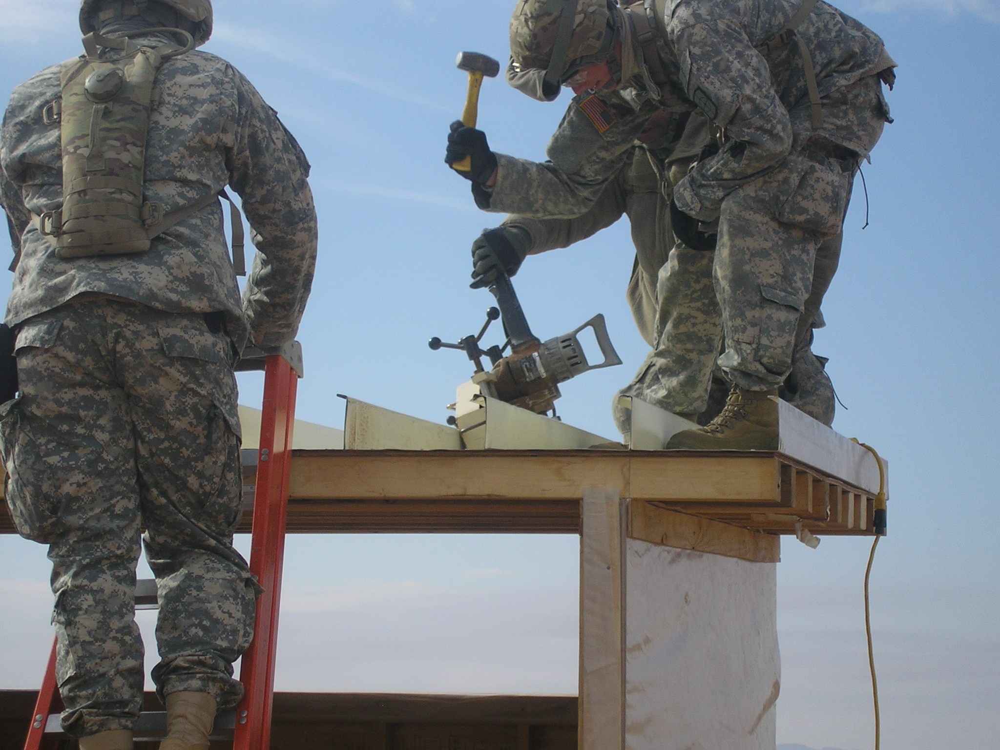 1 / 3 Show Caption + Hide Caption – Soldiers work on a construction project during training conducted by 2nd Battalion, 361st Combat Support Regiment, "Task Force Coyote," 5th Armored Brigade, Divison West at Camp McGregor, Texas, earlier this year. (Photo by Sgt. 1st Class Willie E. G... (Photo Credit: U.S. Army) VIEW ORIGINAL