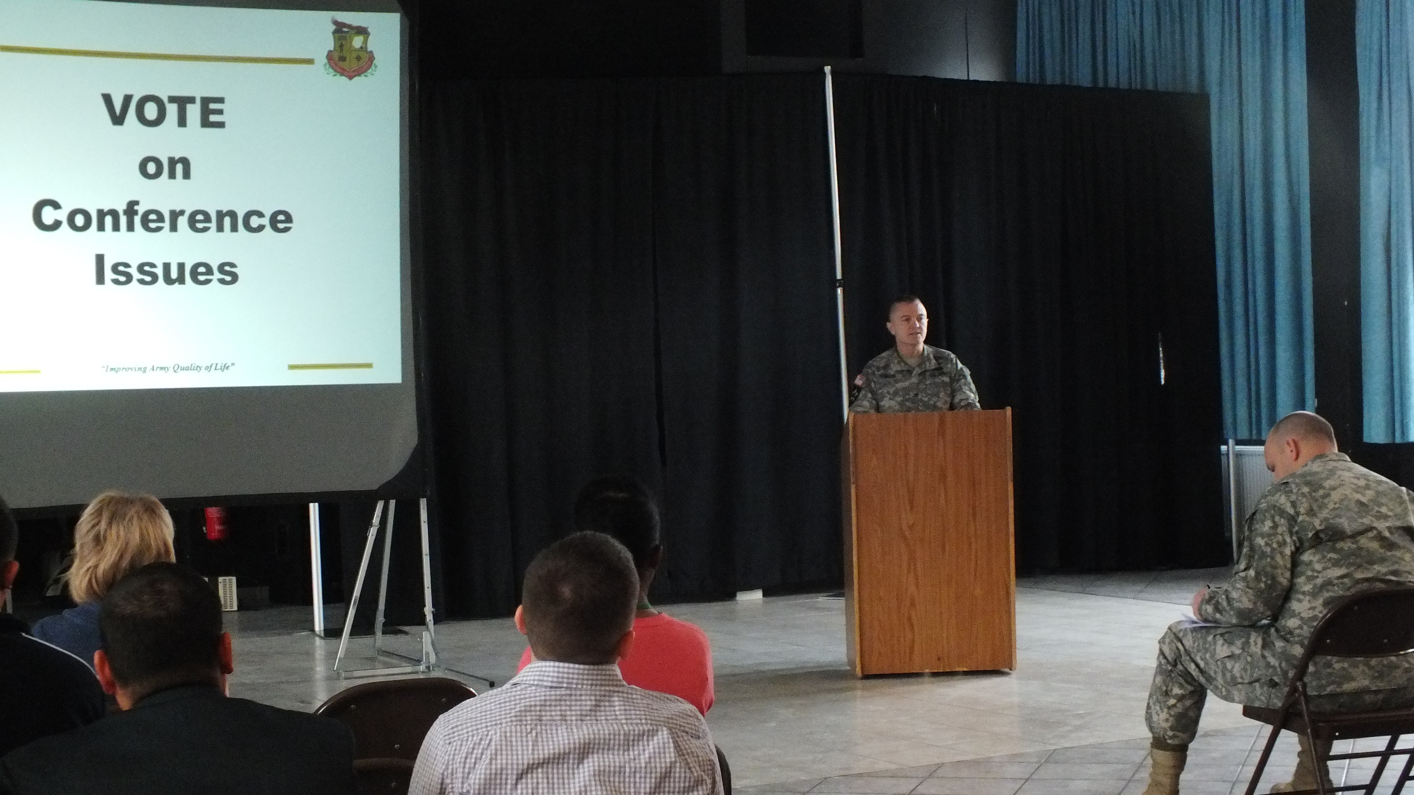 Another hot issue was the Provost Marshall Office, which currently fields four to five military police per shift responsible for patrolling 23,000 square miles. Delegates recommended the addition of one MP platoon to help enforce traffic regulations.