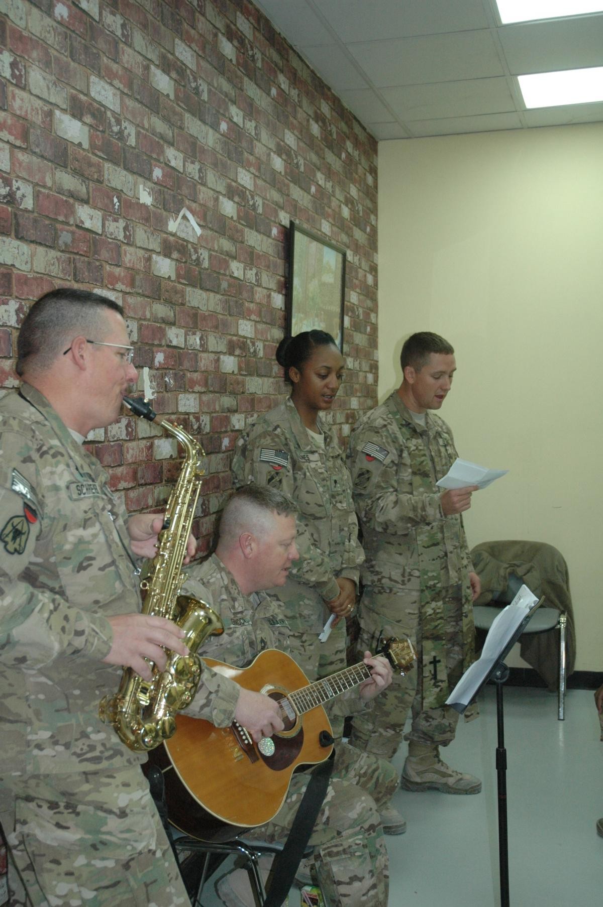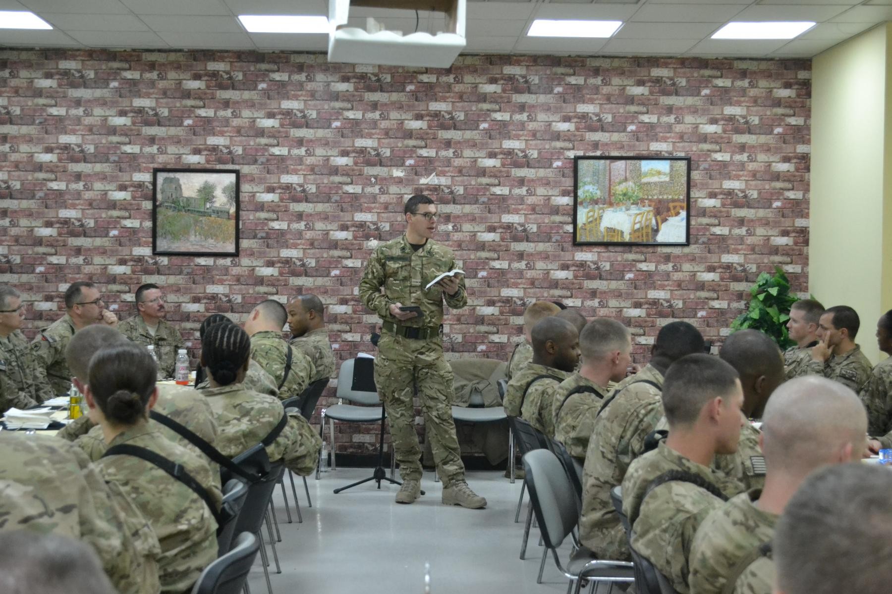 About 50 Task Force Provider soldiers attended the event held at the Independence Dining Facility on Kandahar Airfield where prayer was on the menu. Padre Simon Chapman, a chaplain with the Royal Air Force, United Kingdom, was the guest speaker and served up a motivational sermon to those in attendance.