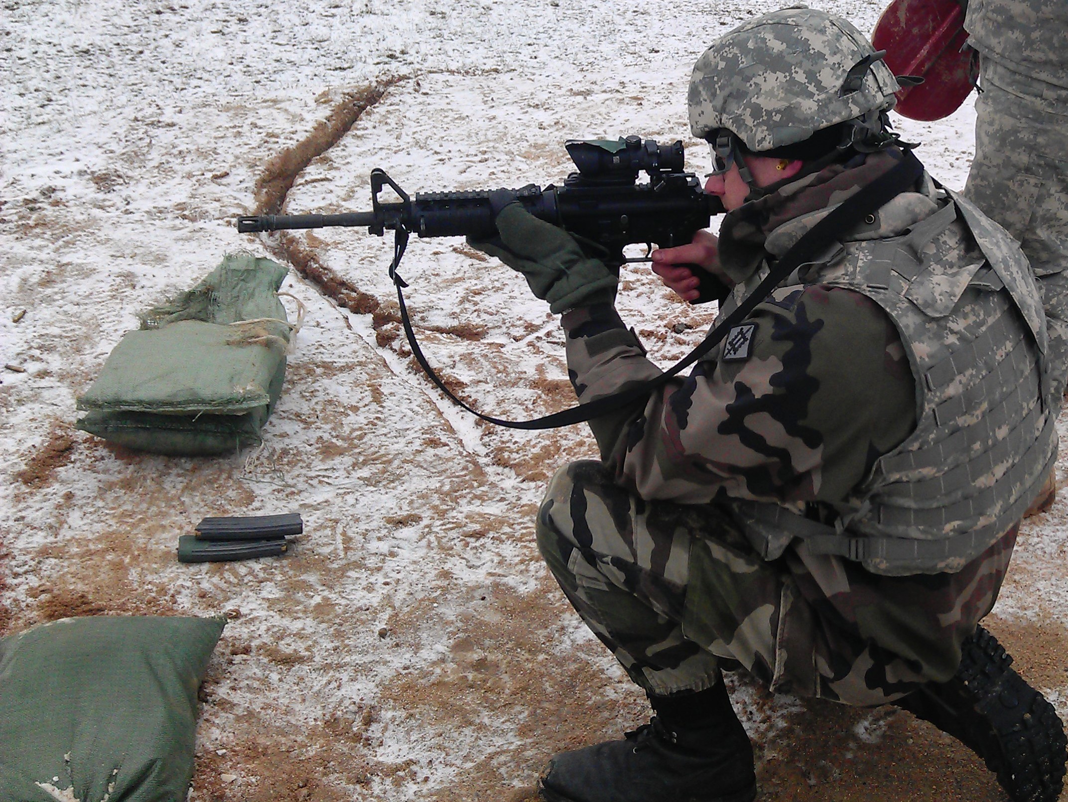 Several of the exchange officers met up with their host lieutenants in the field during various training exercises. This afforded them the opportunity to take advantage of U.S. weapons training including: qualifying with the M-4 carbine and firing the 240B 7.62 mm and M2 .50-caliber machine guns. The French officers also helped manage some weapons ranges by tracking firers, tracking qualification scores and distributing ammunition.