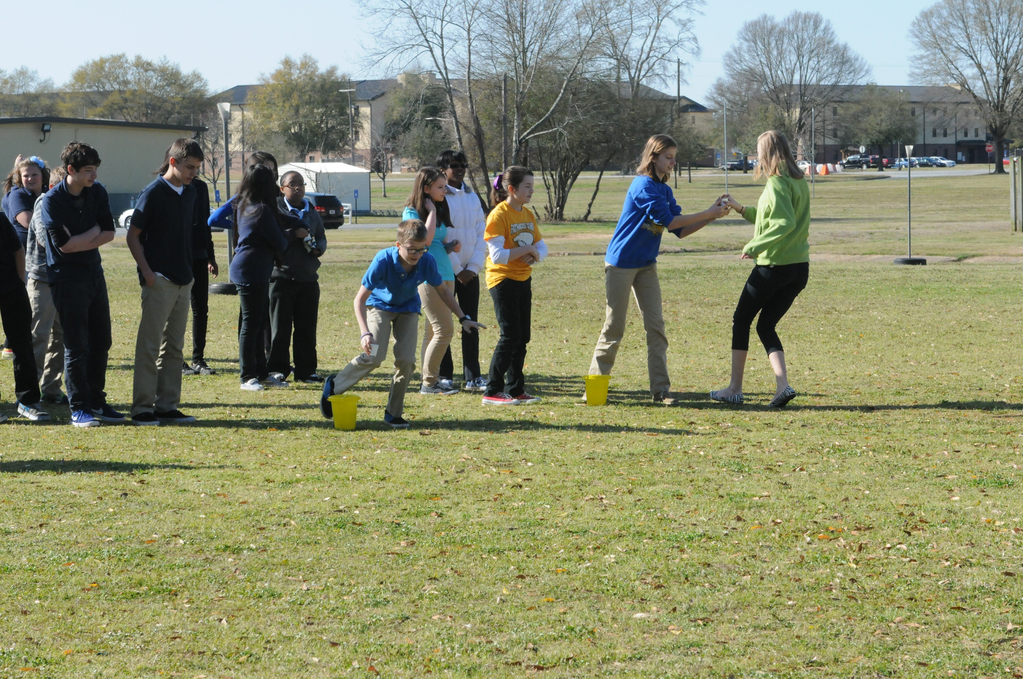 Activities included a bucket brigade relay, military working dog demonstrations and basketball pitting students against faculty, staff and PIE partners. The PIE partners also treated students to hamburgers.