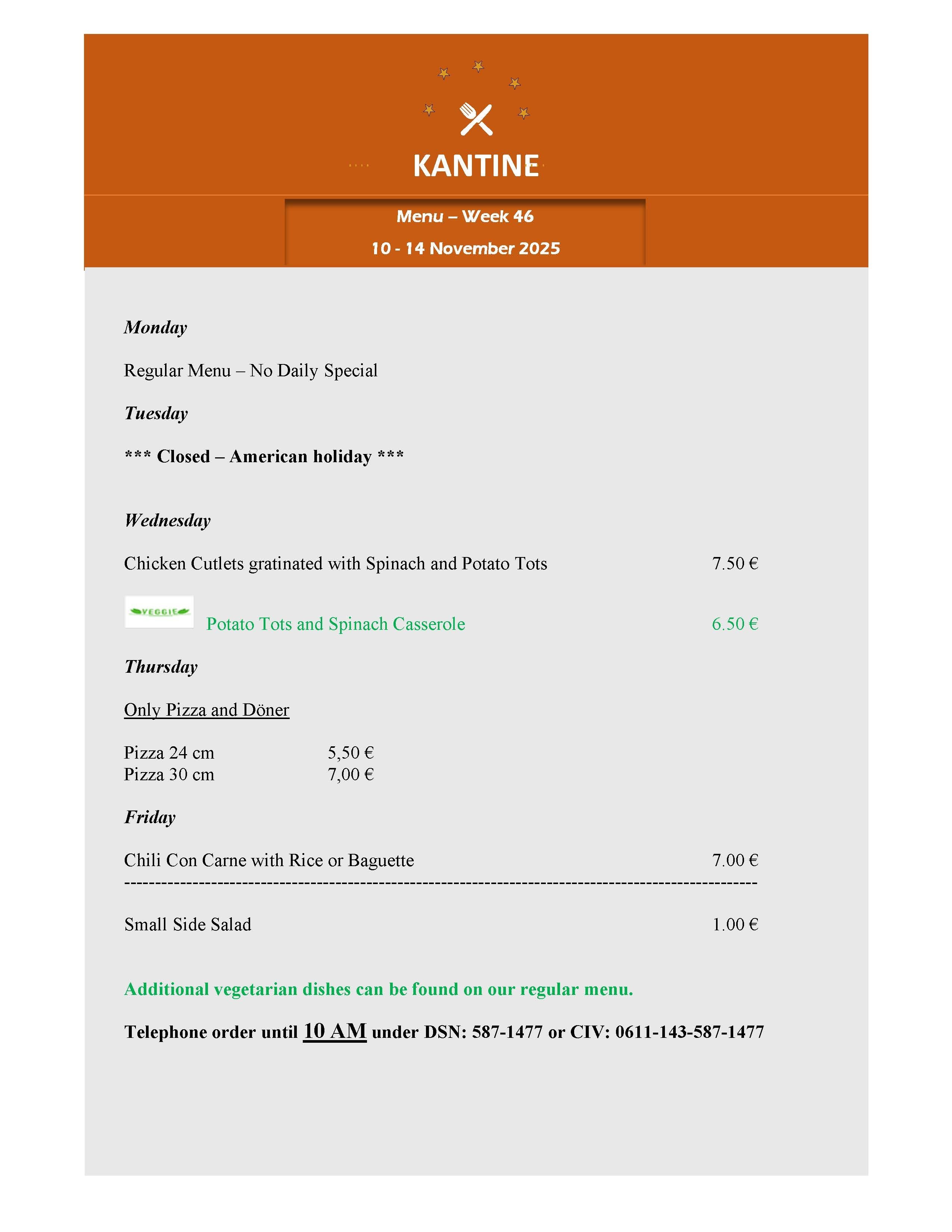 November 28 is a Local National (LN) employee Tarif Day. That means all LN employees have a negotiated day off. No garrison shuttle service. Expect limited to no service at on-post agencies staffed predominately by LN employees. Please call ahead if you have questions. Phonebook…