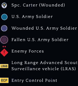 Approximately a half hour into the fight, at 6:30 a.m., with both crew-served weapons disabled and the Humvee under heavy small-arms fire from an estimated 20 to 30 fighters on the high ground to the south and another 30 to 40 fighters attacking from Urmol, Gallegos decided to break contact and move north, employing bounding over-watch to link up with the remaining Soldiers of B Troop, near the tactical operations center, or TOC. Carter volunteered to stay with Larson and provide covering fire for the others as they attempted to bound back.