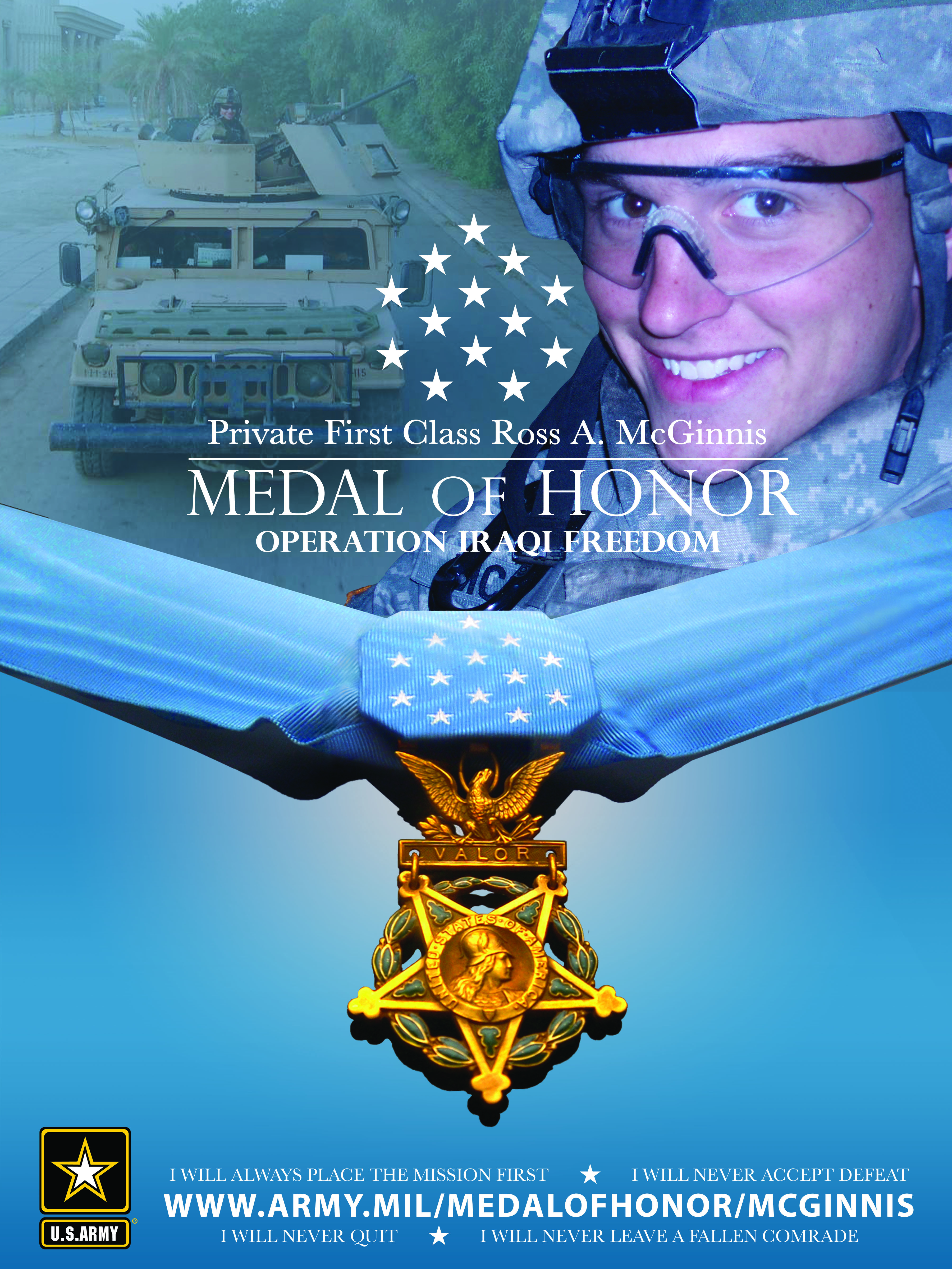 Spc. Ross Andrew McGinnis received the Medal of Honor posthumously during a White House ceremony June 2, 2008 for heroic actions savings the lives of 4 soldiers.