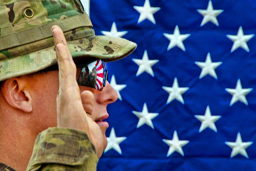 American flag reflects in the glasses of an officer with the 82nd Airborne Division - Download Hi-Res photoThe American flag reflects in the glasses of an officer with the 82nd Airborne Division’s 1st Brigade Combat Team, as he re-enlists another paratrooper on Combat Outpost Qara Baugh, Ghazni Province, Afghanistan, April 22, 2012.