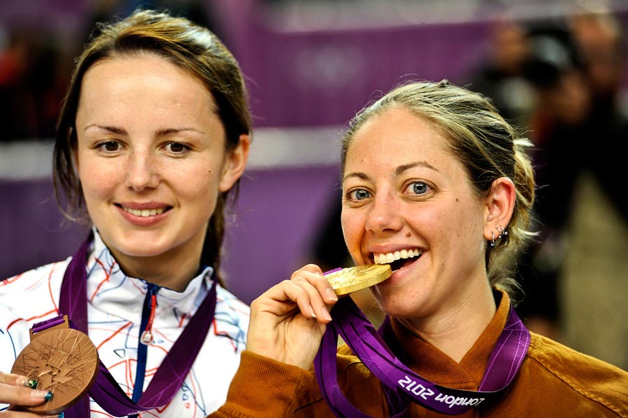 Jamie Gray bites her Olympic gold medal after winning the women's 50-meter rifle 3-positions event - Download Hi-Res photoJamie Gray, wife of U.S. Army Marksmanship Unit shooter Staff Sgt. Hank Gray, bites her Olympic gold medal after winning the women's 50-meter rifle 3-positions event, Aug. 4, 2012, at the Royal Artillery Barracks range in London. Bronze medalist Daria Vdovina of Russia stands beside Gray, who established Olympic records in both qualification (592) and final (691.9) of the event, which includes shooting from prone, standing and kneeling positions.